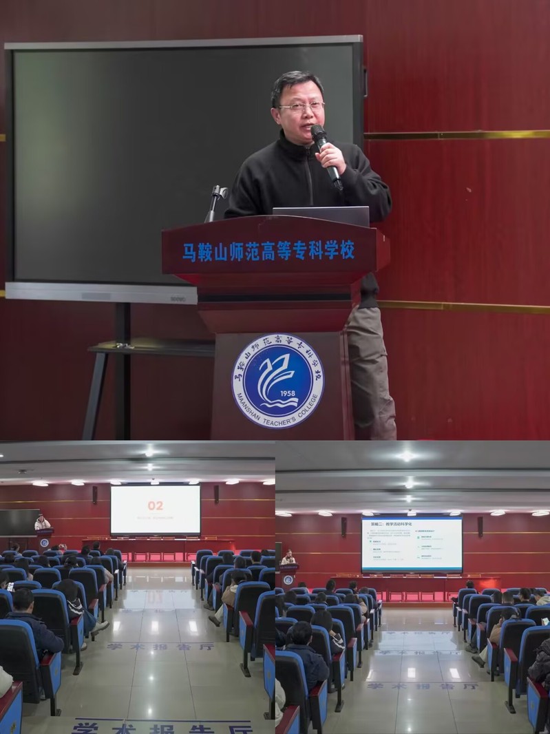 在专家指导环节,阜阳师范大学储亚伟教授应邀作专题分享。储亚伟是国家一流课程负责人、安徽省教学名师,长期深耕智能教育与学习分析领域,成果丰硕。会上,他从宏观趋势与微观实践相结合的角度,系统梳理了“AI+教育”的发展脉络与前沿方向,深入剖析了技术应用中的关键点与难点,并就如何将技术创新转化为育人实效给出针对性建议。其高站位、宽视野的指导,为学校深化教育教学改革提供了有力的理论支撑。
